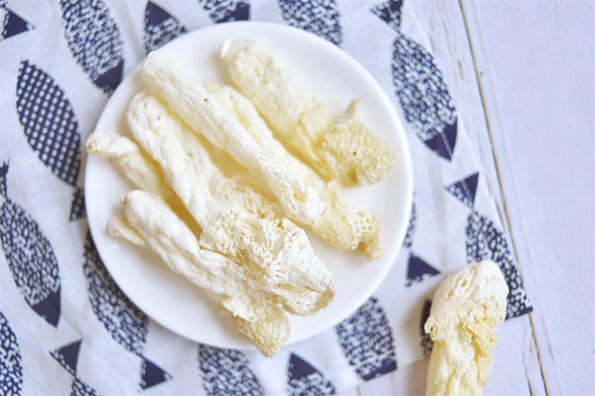 竹笙營養價值很高。據分析,每100克鮮竹笙中含有粗蛋白20.2%(高於雞蛋),粗脂肪2.6%,粗纖維8.8%,碳水化合物6.2%,粗灰分8.21%,還有多種維生素和鈣、磷、鉀、鎂、鐵等礦物質。長裙竹笙的蛋白質中氨基酸含量極為豐富,其中谷氨酸含量達1.76%,是竹笙味道鮮美的主要原因。
