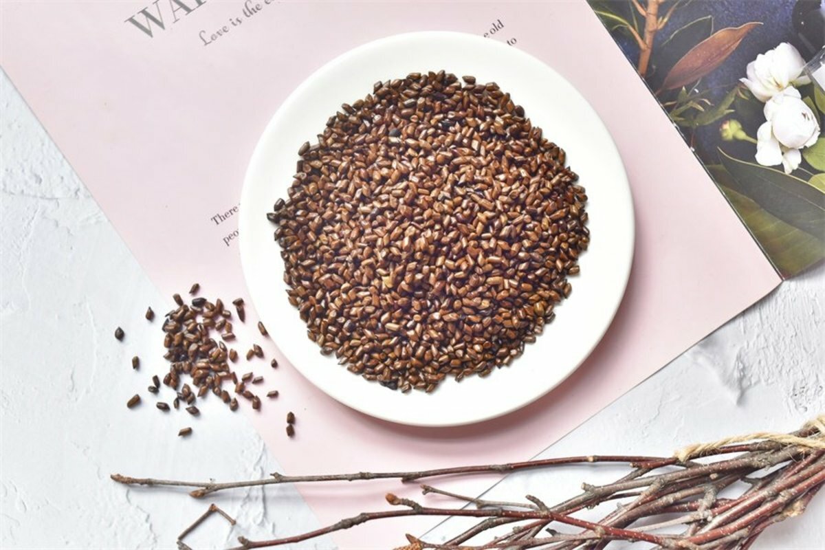 在秋季我們采收成熟果實,曬幹打下種子,再除去雜質,表皮微炸裂,呈暗棕色,偶見焦斑。棱線分明,顆顆飽滿。