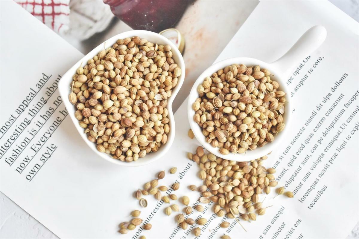 香菜籽別名又叫芫荽籽、胡荽籽等,為傘形科芫荽屬植物芫荽成熟的果實。香菜籽為雙圓球形,表面淡黃棕色,成熟果實堅硬,氣芳香,帶有溫和的芳香和鼠尾草以及檸檬的混合味道,味微辣。原產於地中海沿岸。常用於醃制食物,磨成的細粉可用於許多食品調味中,烹調的理想香料之一,也是調配咖喱的原料之一。