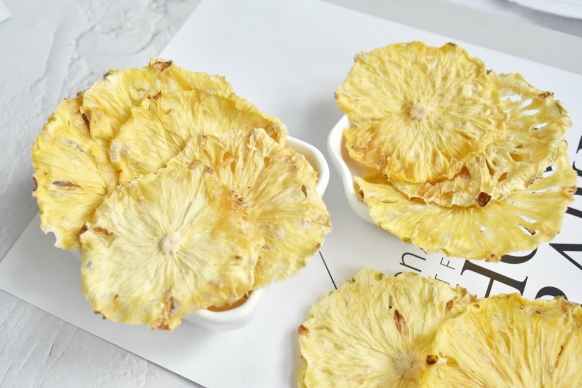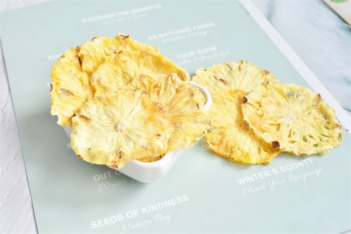 菠蘿營養豐富,據《本草綱目》記載:“菠蘿補脾氣,固元氣,制伏亢陽,扶持衰土,壯精神,益氣,寬痞,消痰,解酒毒,止酒後發渴,利頭目,開心益誌。我們的菠蘿乾低溫烘烤,優勢是鎖住水果的營養,我們根據不同的水果選擇烘烤溫度也不同,正常烘烤溫度在35°到55°,一般烘烤時間長達15-24小時,充分鎖住每一片水果的營養。