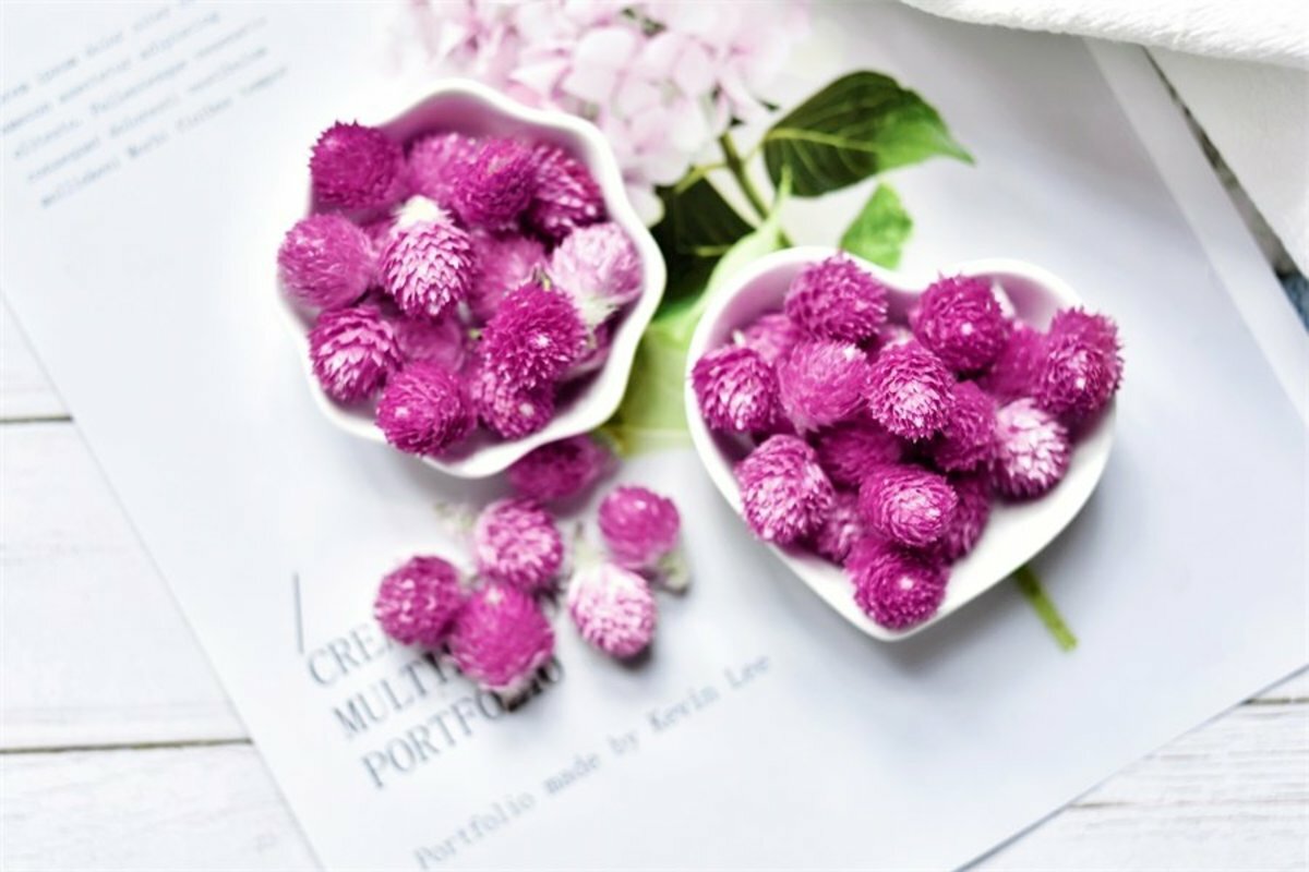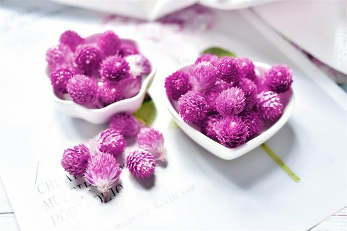 1.取5-8粒千日紅,加入300ml約80℃熱水沖泡。