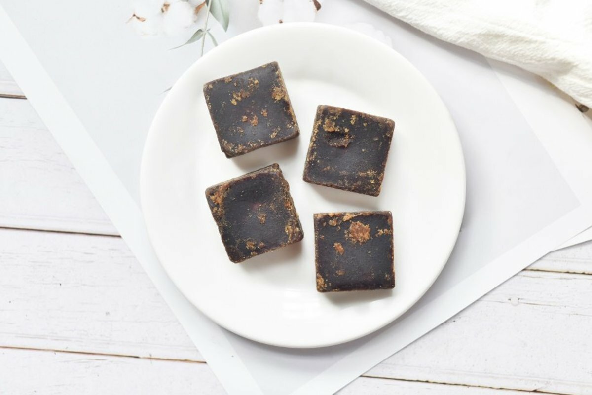黑糖是一種沒有經過高度精煉帶蜜成型的的蔗糖,為禾本科草本植物甘蔗的莖經壓榨取汁煉制而成的赤色結晶體,有豐富的糖份、礦物質及甘醇酸。黑糖顏色比較深,帶有焦香味。黑糖中蘊含著大量的營養物質對肌膚的健康、營養有著獨到的功效。可加速皮膚細胞的代謝,為細胞提供能量,補充營養,促進再生,黑糖中含獨特的天然酸類和色素調節物質,可有效調節各種色素代謝過程,平衡皮膚內色素分泌數量和色素分布,減少局部色素的異常堆積。