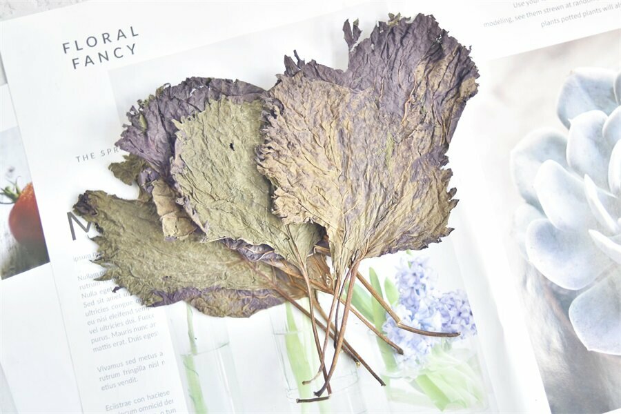 紫蘇葉柄紫色或紫綠色,質脆。嫩枝紫綠色,斷面中部有髓,氣清香,味微辛。均以葉完整,色紫、香氣濃者為佳。是非常有營養的一種食物,紫蘇葉屬於味辛、性溫的一種食物,同時還可以起到理氣的功效。用於緩解感冒風寒,常見的惡寒發熱、咳嗽、氣喘等病癥。