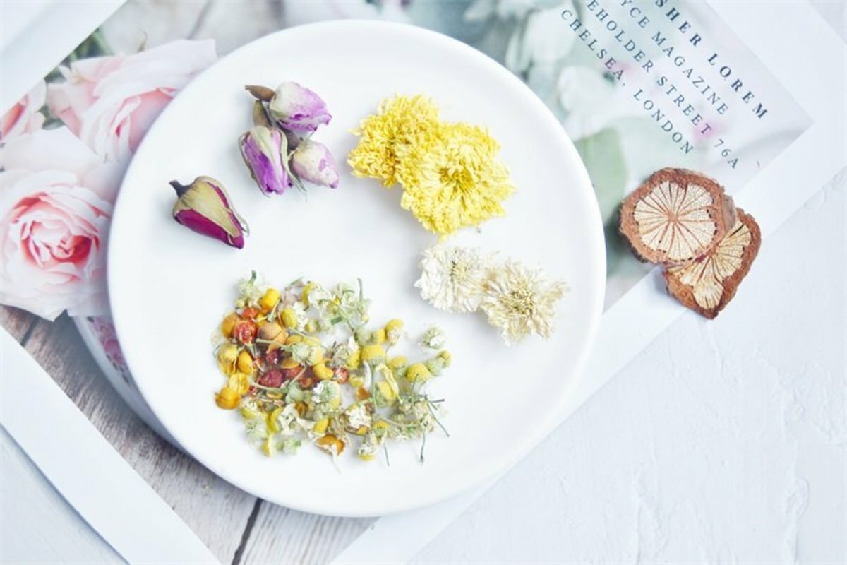 在1-2月間,我們摘取無農藥的野放洋甘菊,搭配玫瑰,合歡,菊花和月季,創造獨特的層次感。有別於一般添加香精的西洋花草茶,這是一款很適合女性夏日在辦公室飲用的花茶,完全可以代替水來補充身體每日所需的水分。五花,推薦給每日面對繁復多重工作的您。