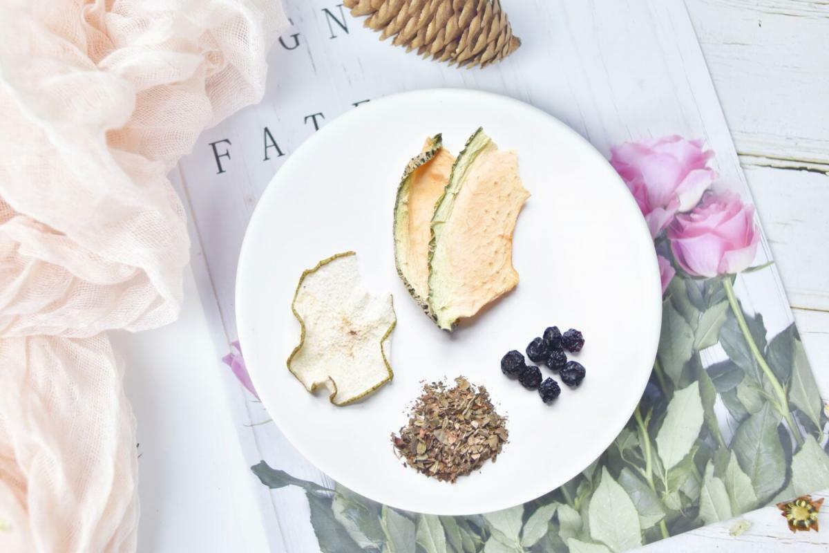 1.取果乾和茶包,加入300ml-500ml約80℃熱水沖泡