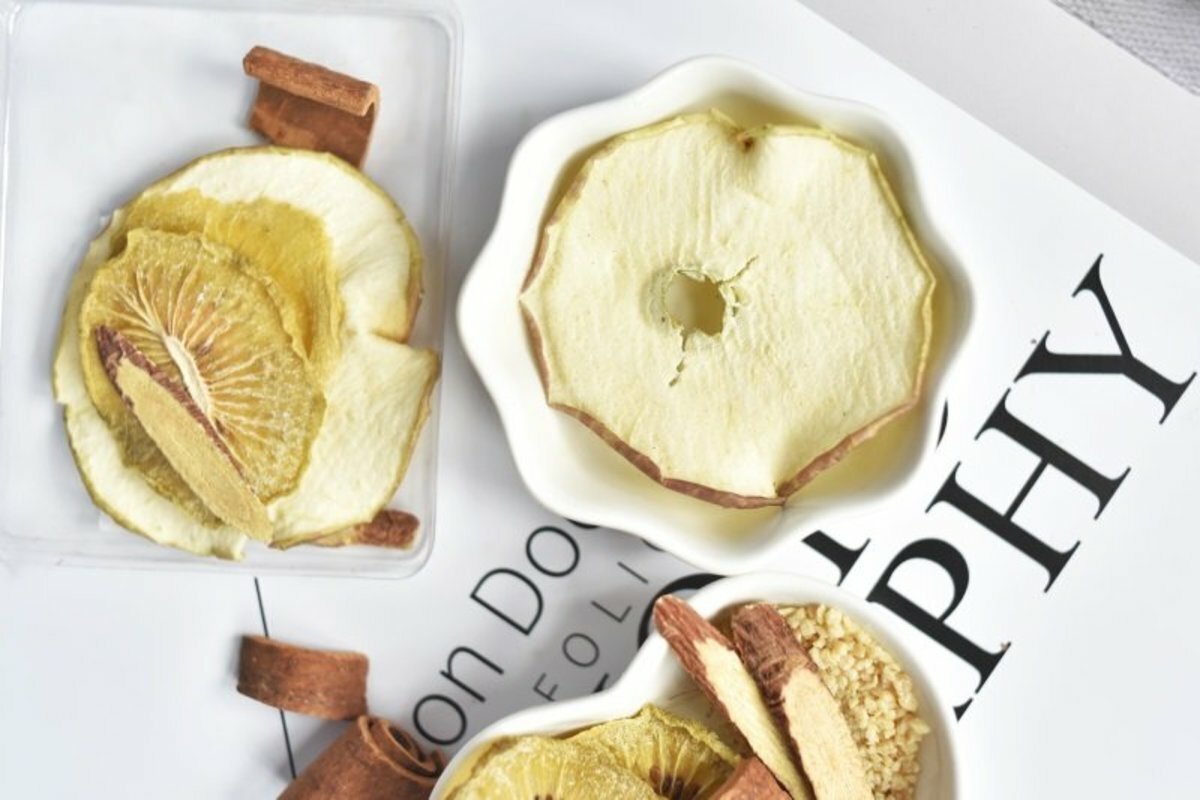 我們對四季必備的水果進行深度調配開發,只使用“純天然無農藥種植”的優質水果經過科學衛生製成的水果乾,是品質上乘的組合水果茶。沖泡後,茶湯清透明亮,喝起來口感順滑,清新果香在口中慢慢散開,還有淡淡的花茶味。