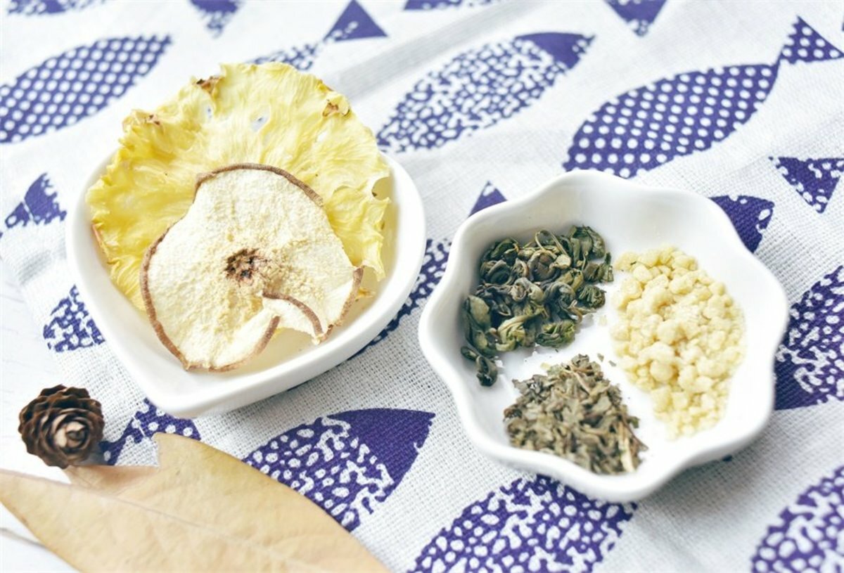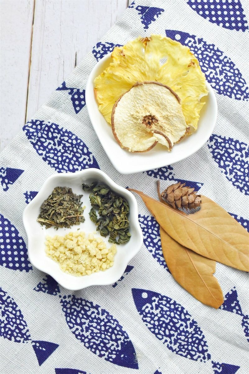 甜茶、紫蘇、雪梨加上菠蘿的組合,對咽喉乾、癢、痛、音啞、痰稠、便秘、尿赤、祛痰均有良效,能祛風熱、潤肺涼心、消痰降火、解毒。有止咳化痰、養血生肌的作用。