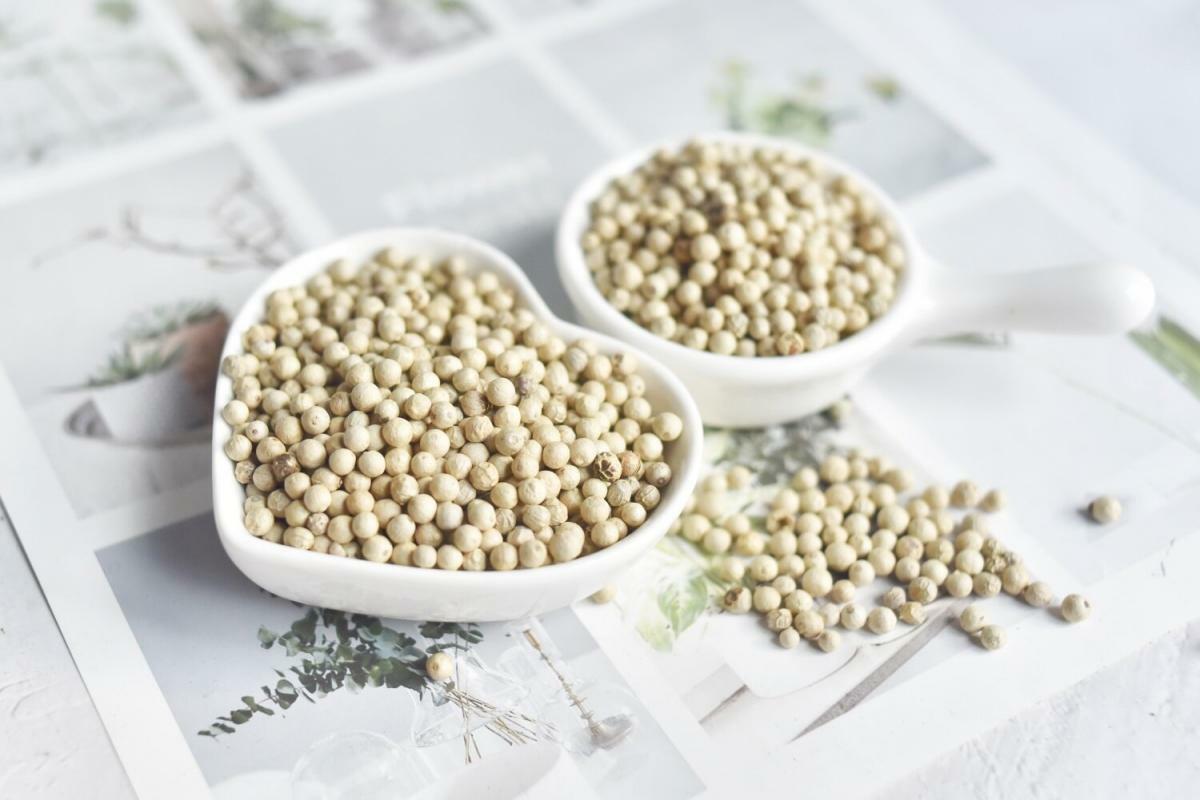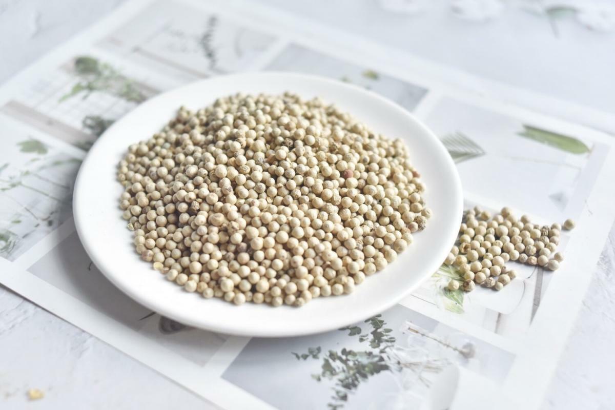 白胡椒,為胡椒科植物胡椒的乾燥近成熟的果實。氣味芳香,是人們喜愛的調味品之一。辛,溫。溫中散寒,下氣,消痰;主產於海南、雲南、廣東、廣西等地,表面黃白色或淡黃白色,平滑,頂端與基部間有多數淺色線狀條紋。其藥用價值比黑胡椒稍高一些。
