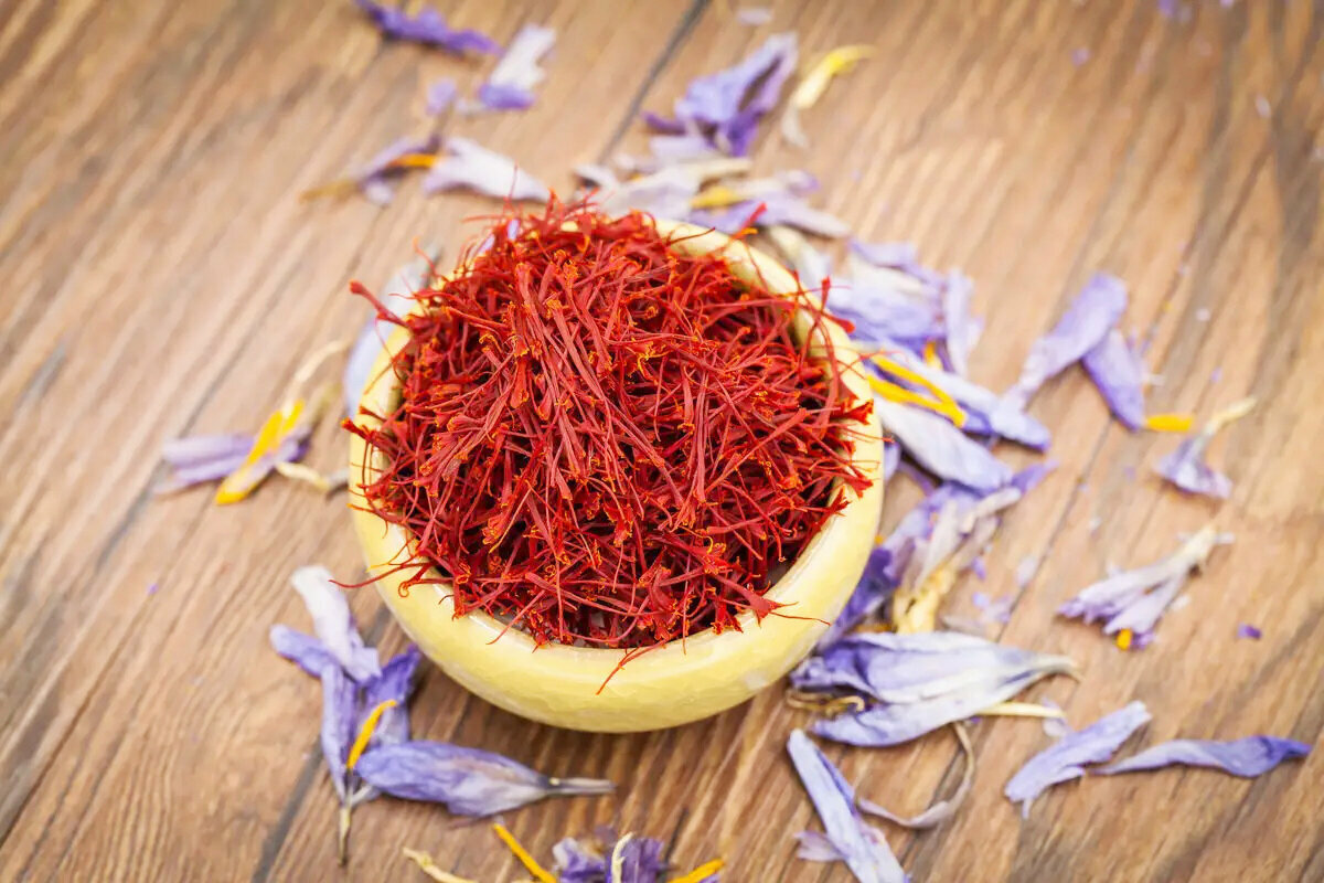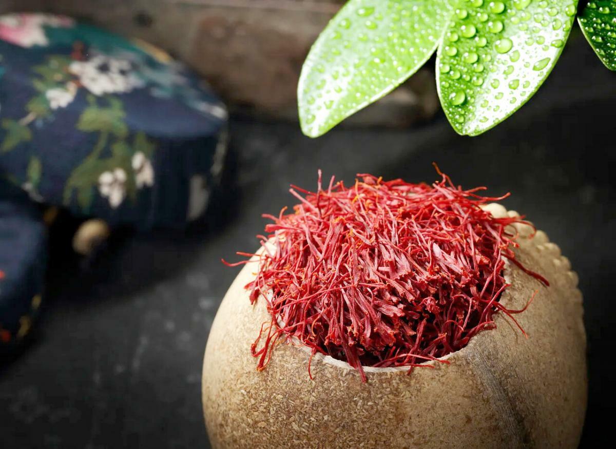 藏紅花又稱番紅花、西紅花,是一種鳶尾科番紅花屬的多年生花卉,也是一種常見的香料。多年生草本。球莖扁圓球形,直徑約3釐米,外有黃褐色的膜質包被。葉基生,9-15枚,條形,灰綠色,邊緣反卷;葉叢基部包有4-5片膜質的鞘狀葉。花莖甚短,不伸出地面;花1-2朵,淡藍色、紅紫色或白色,有香味,花柱橙紅色,柱頭略扁,頂端楔形,有淺齒,子房狹紡錘形。蒴果橢圓形,長約3釐米。
